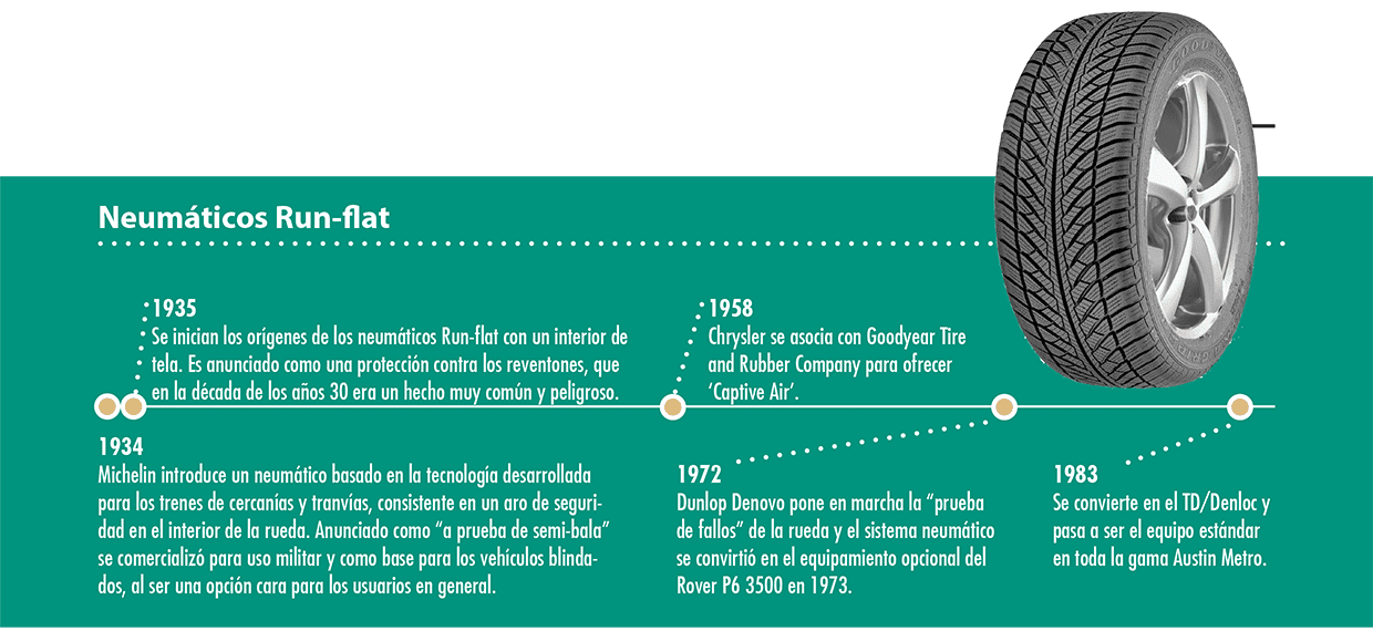 de Continental, ZP (Zero Pressure) y PAX de Michelin, DSST (Dunlop Self